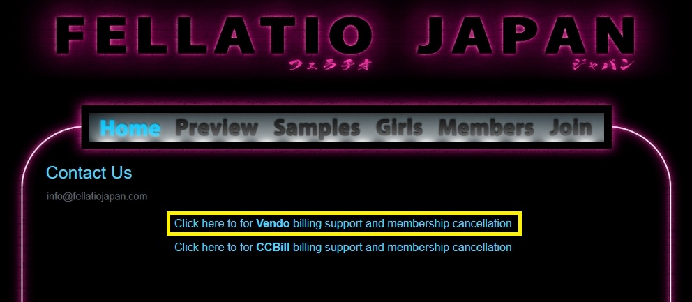 フェラチオジャパン(FellatioJapan.com)のお問い合わせページからvendoのサポートページに移動
